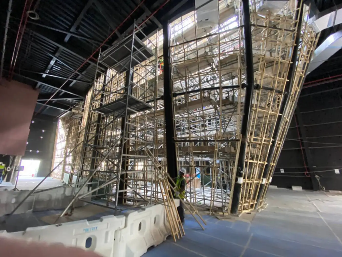 Die passgenaue Anfertigung der hölzernen Strukturen mit ihren vielen schrägen und sich kreuzenden Flächen und das sich über «Der Schlucht» befindliche Oberlicht. Ausführungen, die dank gut koordinierter Teamarbeit in die Tat umgesetzt werden konnten.