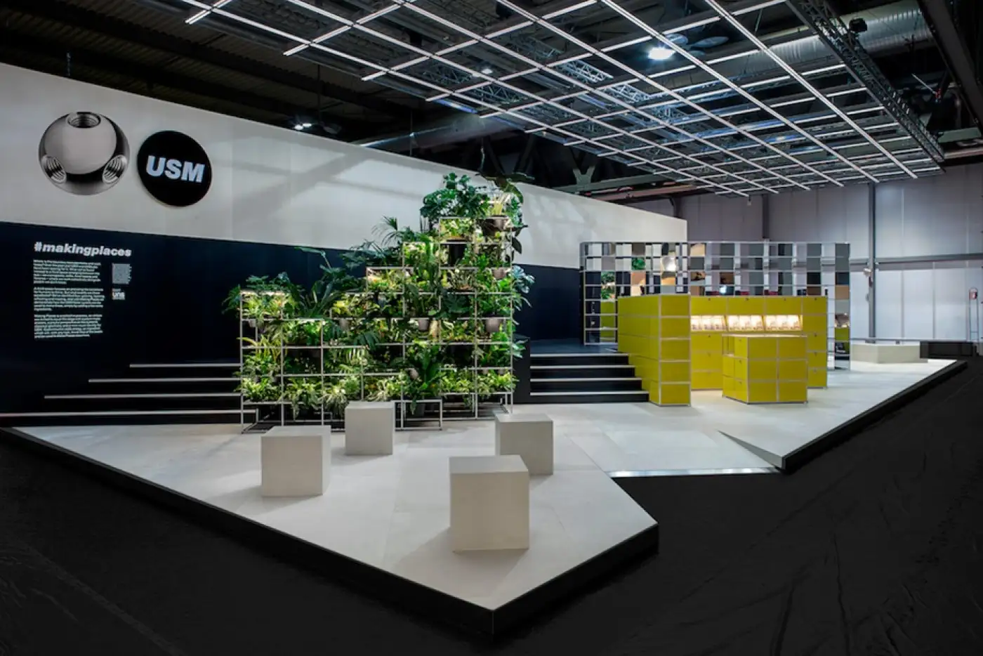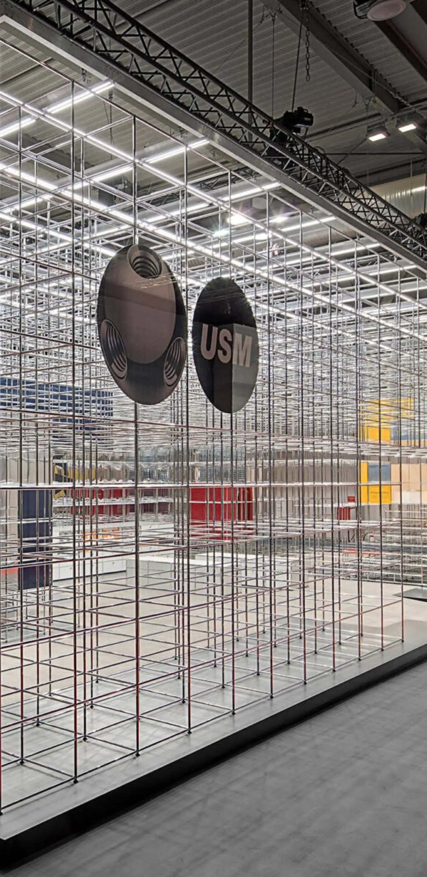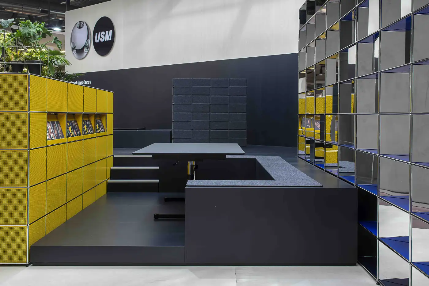 The inspiration for the Salone del Mobile 2019 booth came from the question “Where exactly is the boundary between working and living today?”. Instead of a clear distinction, the areas seem to merge more and more. The integrated “USM Haller systems” demonstrate a dynamic adaptability and invite visitors to actively participate.